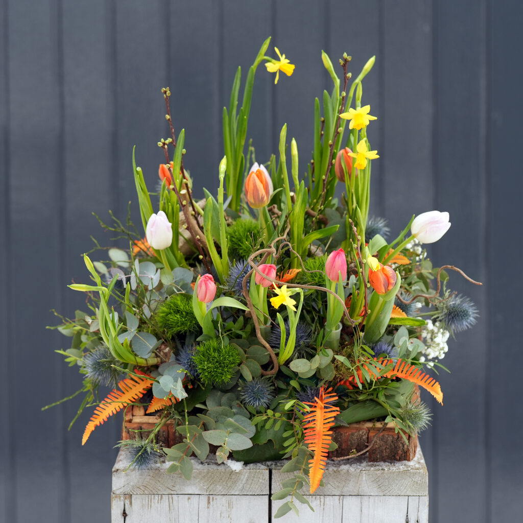 Voorjaarsstuk op houten bak (vierkant 40×40 cm) in kleur Bont________€ 57,50